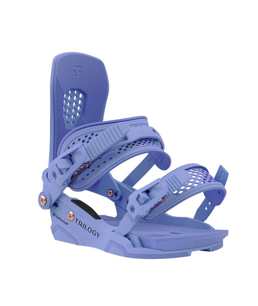 Life moves fast, and you have to keep innovating to keep pace with the best. That's why the legendary Union Trilogy Snowboard Bindings have been redesigned from the ground up. Union has put their most cutting edge technology into these bindings, and the results are spectacular. Newly engineered highbacks, baseplates, and straps come together for a ride that delivers better comfort, response, and durability for everyday all mountain riding. A knock-out!