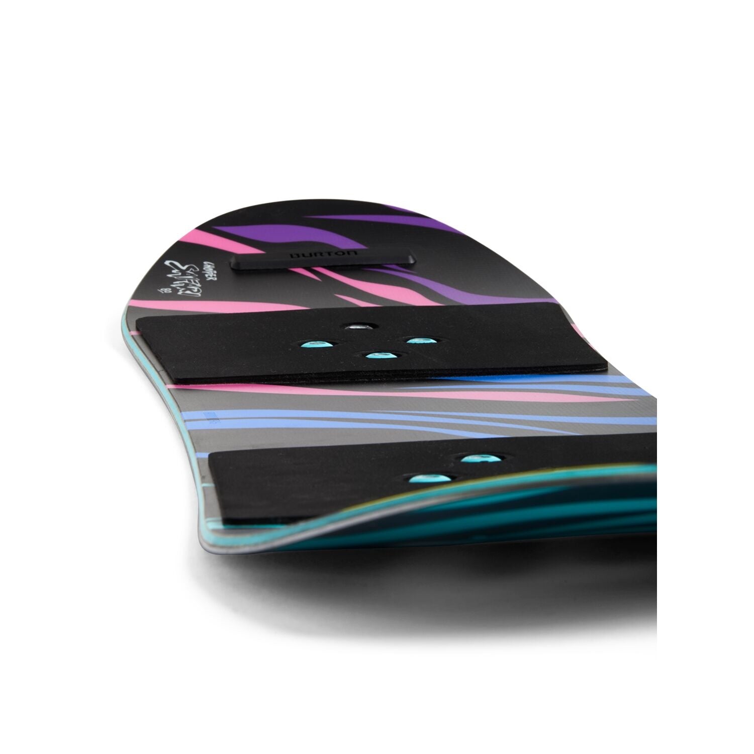 The kids' Burton Chopper® Snowboard is the ticket for tykes who want to start snowboarding and quickly learn the basics. What makes it so perfect is the beginner-friendly combo of a convex base with upturned edges and the softest flex possible so that even the lightest weight riders can master turning and stopping. The catch-free feeling continues with a flat profile from nose to tail that's extra stable for better balance and board control. Attach the Riglet accessory to the nose or tail of the 80-120cm sizes to tow them around 'til they're comfortable enough to add bindings.