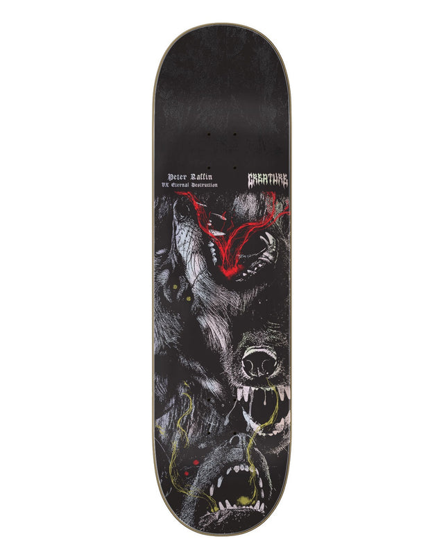 The Creature Raffin Mortem VX Deck Dark Technology and Grim Art lie at the heart of the Mortem Pro series featuring the battle-proven VX Eternal Destruction construction. Three of our finest are aligned with three different dimensions. Choose from Jhankas 8.375”, Raffin’s 8.6” or Lord Worthington’s stout 9” egg shape and conquer the most unforgiving spots with confidence. Embrace the future or get left in Creature’s dust. Artwork by André Trindade.