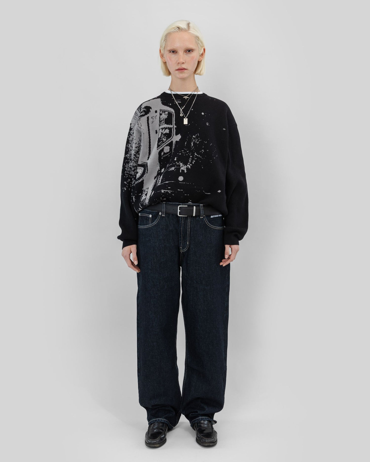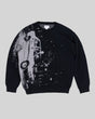 Loose fit knitted sweater. Jacquard knitted artwork.