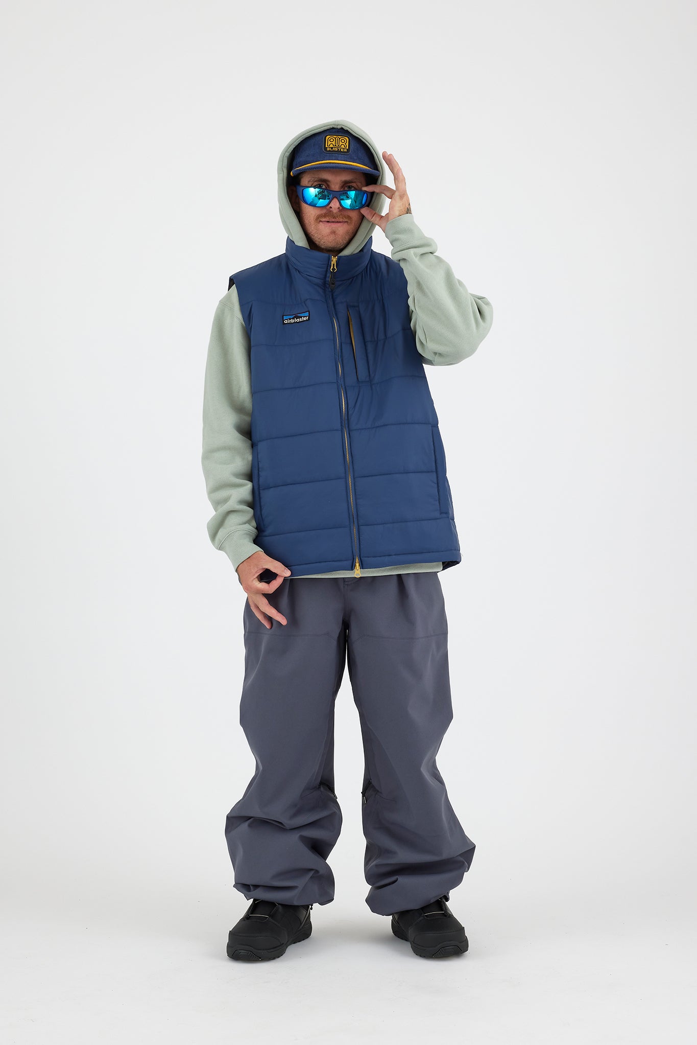 Independently requested by half of the team, we had to give this "armless jacket" concept a try. The idea is (they said) that it keeps your torso warm while allowing your arms to move around real good. Being a constant force of innovation within the snowboard industry, Airblaster decided to just take the arms off the dang thing and let the freestyle flow. 80g insulation main body, 0g arms. Chain stitch Airpill quilting on back, all gussied up in the team colors. They call it a vest.