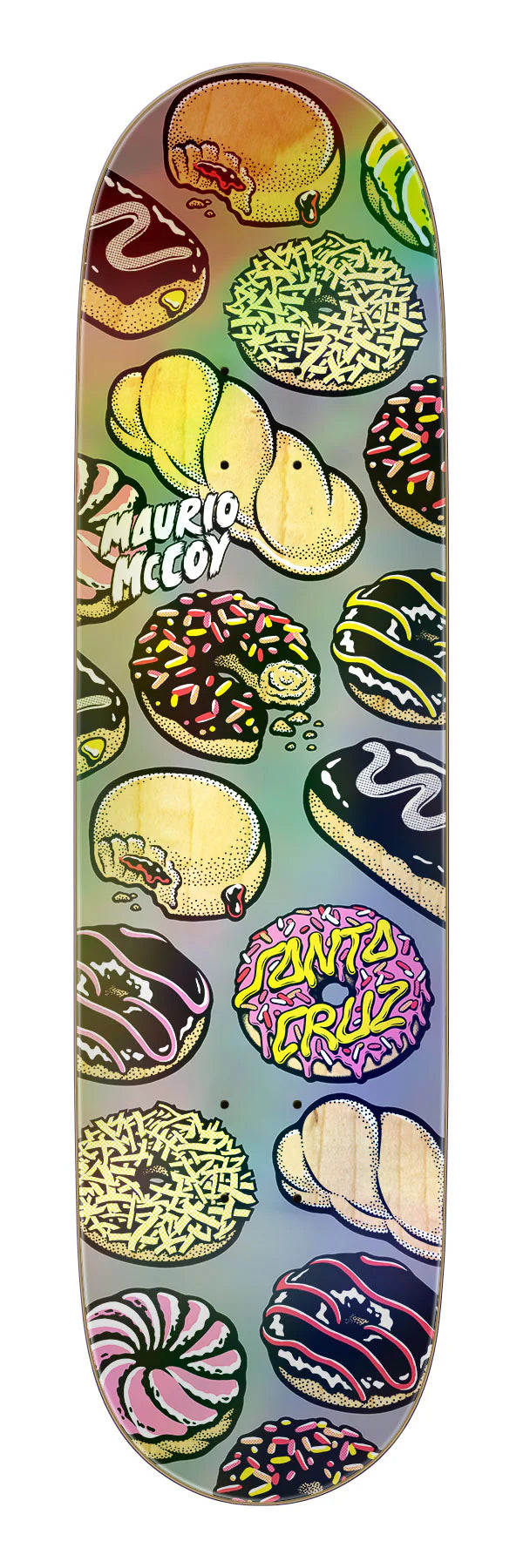 Santa Cruz Skateboards Maurio McCoy Donuts Pro 7 Ply deck featuring spot gloss and prismatic graphics with natural veneer reveal.