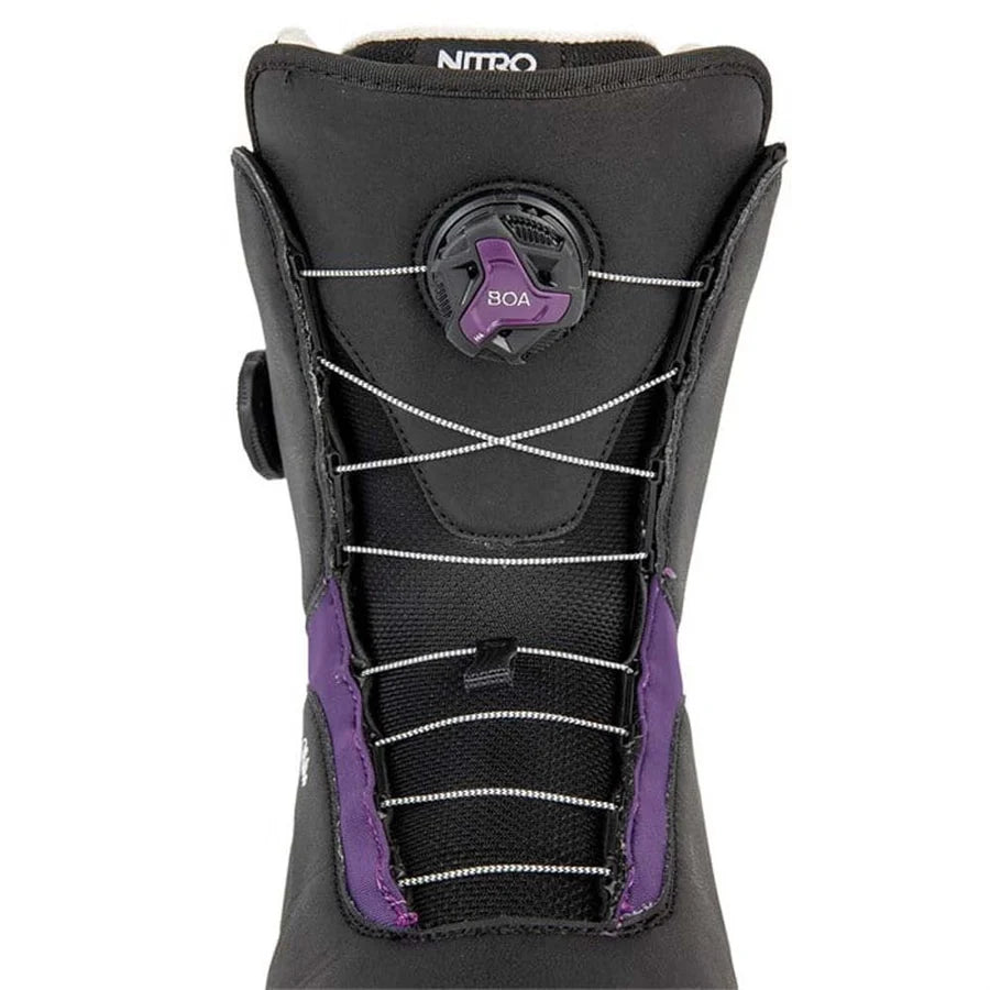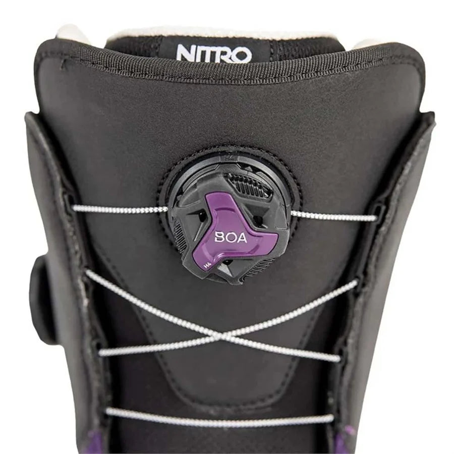 With a smooth and mellow flex rating and the ultra comfortable Cloud 2 liner, the Nitro Scala Boa Snowboard Boots are a perfect match for newer or mellower riders who place comfort at the top of their priority list. Backed up by the convenience and adjustability of the Boa® Fit System, the Scala will let you cruise for hours without even thinking about your feet.