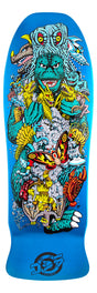 Santa Cruz Skateboards Godzilla Kaiju Roskopp deck featuring spot gloss on full dip candy metallic blue deck with Godzilla vs. Santa Cruz deck top graphics and laser engraved Godzilla logo. 7 ply North American Maple pressed individually using epoxy - making a strong, responsive deck with long lasting pop and consistent concave and kick.