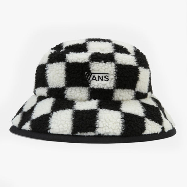 Drawing inspiration from the 90s, the Vans Check Bucket Hat is equipped with a two tone retro look including a signature Vans pattern. This sherpa bucket hat by Vans also features the brand's world famous black-and-white checkerboard pattern printed all over as well as a Vans woven flag label. 65% woo, 35% nylon sherpa fleece.