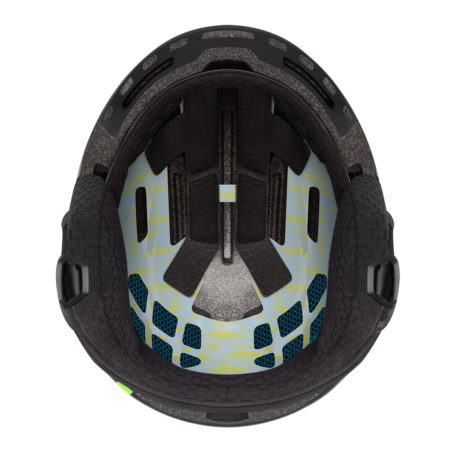 - Removable goggle strap lock for streamlined shell when goggles are worn under helmet