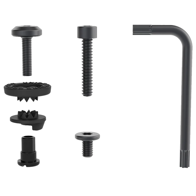 Use to replace the standard steel screws with lightweight titanium. 15 grams lighter than the standard steel screw set.