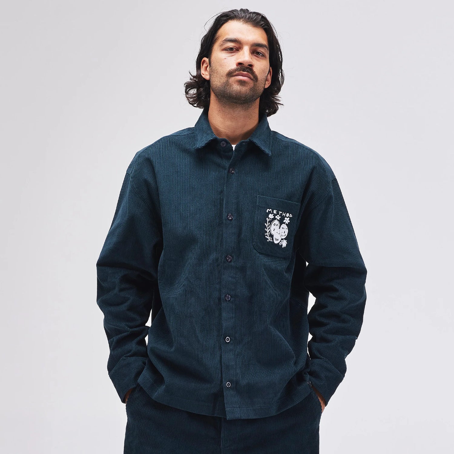 Well this piece goes! And actually goes with a pant to match if you want the ultimate top to bottom look. Arthur always wanted a cord two-piece so here it is. Featuring his artwork embroidered on the pocket for that unique touch. Works well under or as an overshirt, your choice.